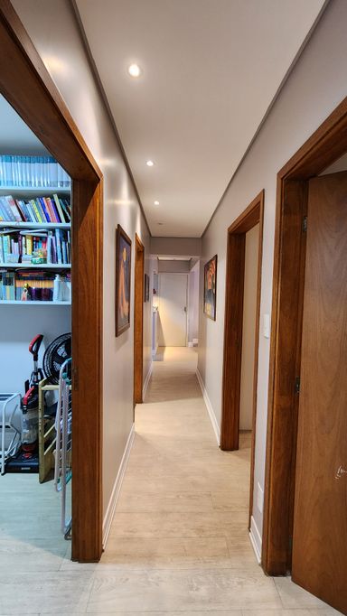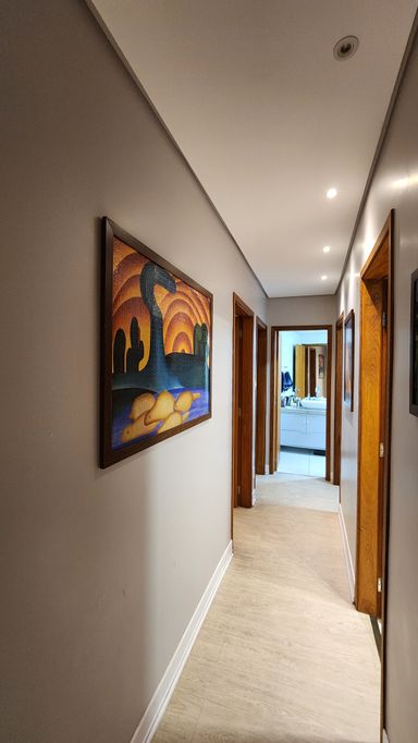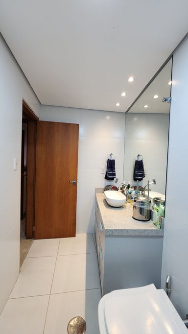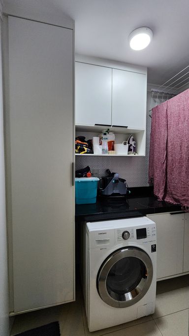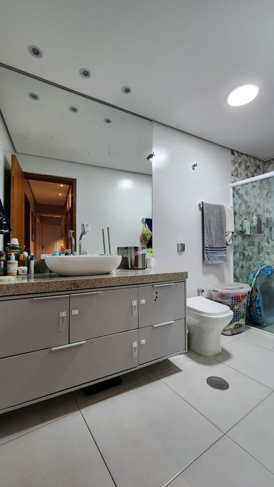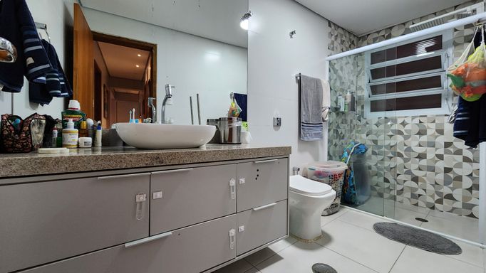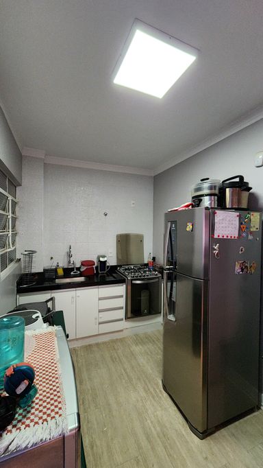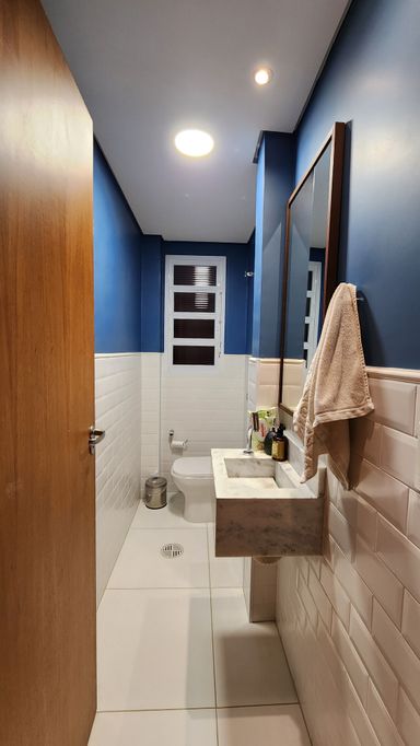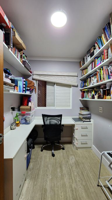 ⏩ São 2 dormitórios com armários planejados e o 3⁰ transformado em escritório, banheiro social, lavabo, ampla sala, cozinha americana espaçosa e área de serviço.
