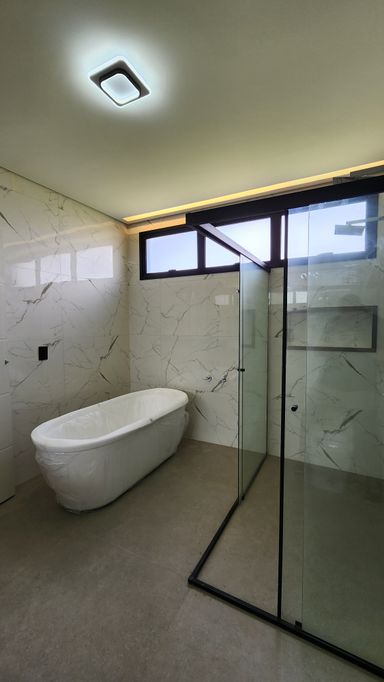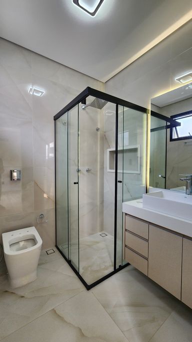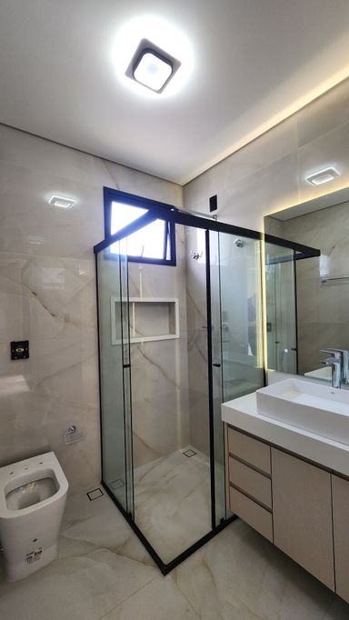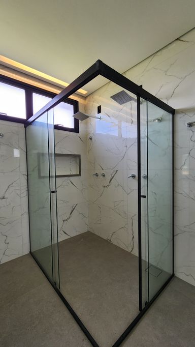 ▸ Box de vidro temperado em todos os banheiros