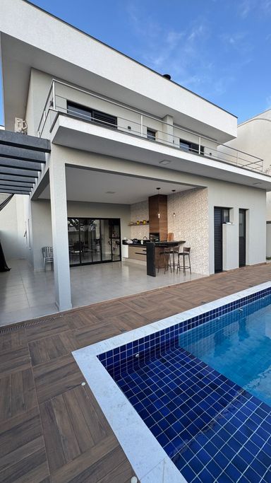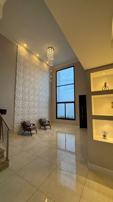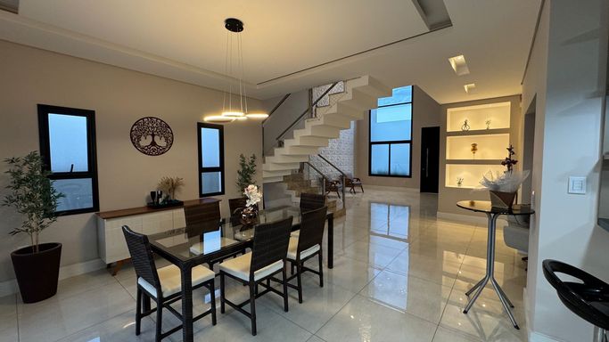 Projeto contemporâneo com planta inteligente e moderna com Integração entre os ambientes, aquecimento solar, iluminação em LED e ar condicionado. Piso superior com 3 suítes, sendo uma máster com closet, todas avarandadas. Piso térreo com amplo living para 2