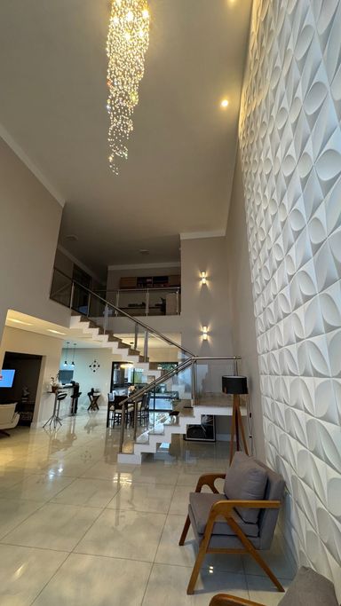 ambientes com pé direito duplo, sala home theater reversível para mais um dormitório, escritório, lavabo, cozinha, lavanderia, área gourmet com churrasqueira